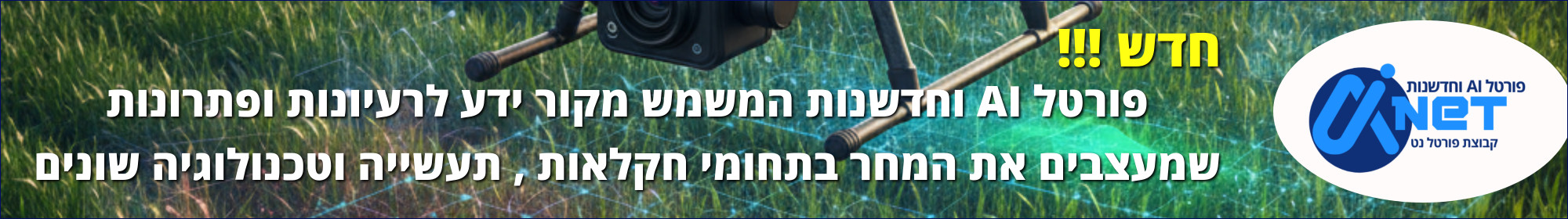 פורטל לתחום הAI וחדשנות WWW.AINET.CO.IL המוביל לבינה מלאכותית וחדשנות טכנולוגית. בעולם שבו הקצב המהיר של הפיתוחים משנה את פני התעשייה, אנו משמשים כעוגן הידע שלכם ומנגישים את הכלים והרעיונות שמעצבים את המחר.