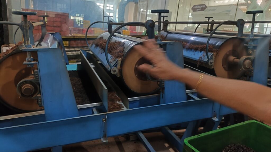 בשלב הבא, כפי שמופיע בתמונות 1 ו-2, העלים עוברים למכונות גלילה גדולות. כאן הם נמעכים ומגולגלים.