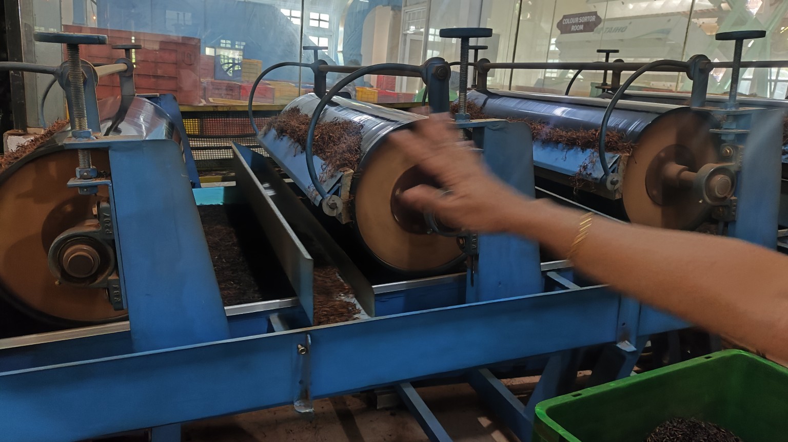 בשלב הבא, כפי שמופיע בתמונות 1 ו-2, העלים עוברים למכונות גלילה גדולות. כאן הם נמעכים ומגולגלים.